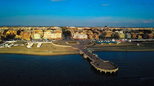 Inaugurato il 27 ottobre del 1940 proprio di fronte alla Piazza dei Ravennati, il Pontile della Vittoria rappresenta il simbolo per antonomasia del litorale ostiense.